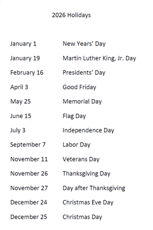 Monday-Friday, 8:00 am - 4:30 pm.